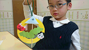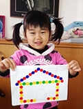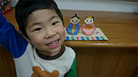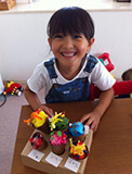 体験レッスンのときから工作に興味津々、お母さまが「こんなに工作好きとは知らなかった」と仰るくらい楽しく集中して取り組まれています。入会当初は恥ずかしがり屋さんでしたが、お人形と一緒にニッコリ。「自分で作った、うまくできた」の積み重ねがお子さまの自信につながります。