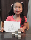 昨年からレッスンをお始めになった元気な男の子さんです。小学生のレッスンでもプリントはもちろん具体物をつかって学びます。平面から立方体・直方体・三角すい・三角柱・四角すいなどをつくるのに必要なパーツ、その数、構成をじっくり考えて作ったあと、こんな大作を作ったそう です。