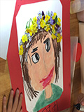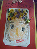 「絵を描くことに興味がない」「絵をどう教えて良いかわからない」という ご相談を特に男の子さんのお母さまからよくいただきます。行事と目新しい材料をからめてモチベーションアップ!の取り組みのご紹介です。母の日にお母さまにプレゼントする絵画、本物の生花を貼って髪飾りをつくります。大好きなお母さまが喜んでくれる、そして普段は眺めて楽しむお花を、触って制作の材料にできることも意欲のでるポイントです。上の写真は男の子さんの作品ですが、丁寧に生き生きと描かれていてとてもステキです。左の写真は3歳さんが最後まで頑張って仕上げてくれました。